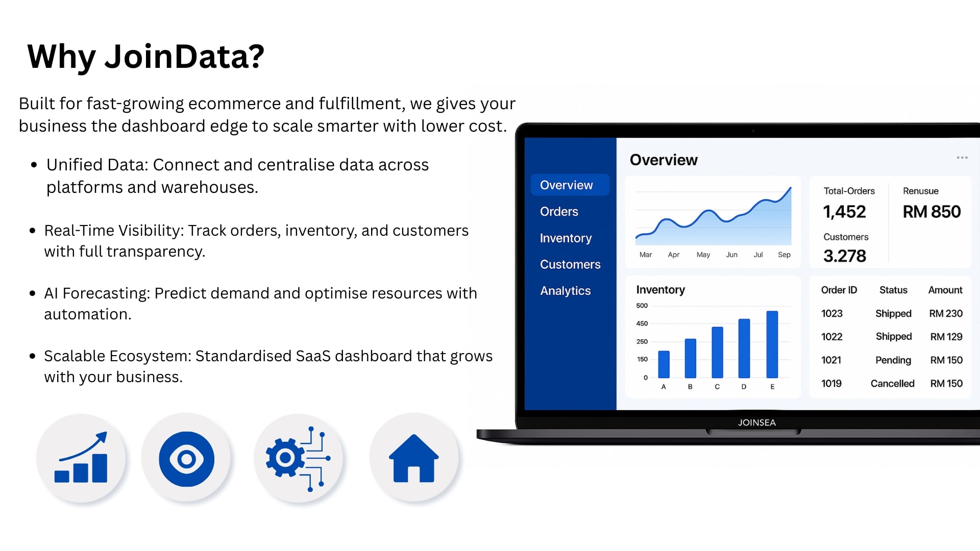 Malaysia’s first one-stop centralized e-commerce data business intelligence platform integrating ERP + WMS + BI.
